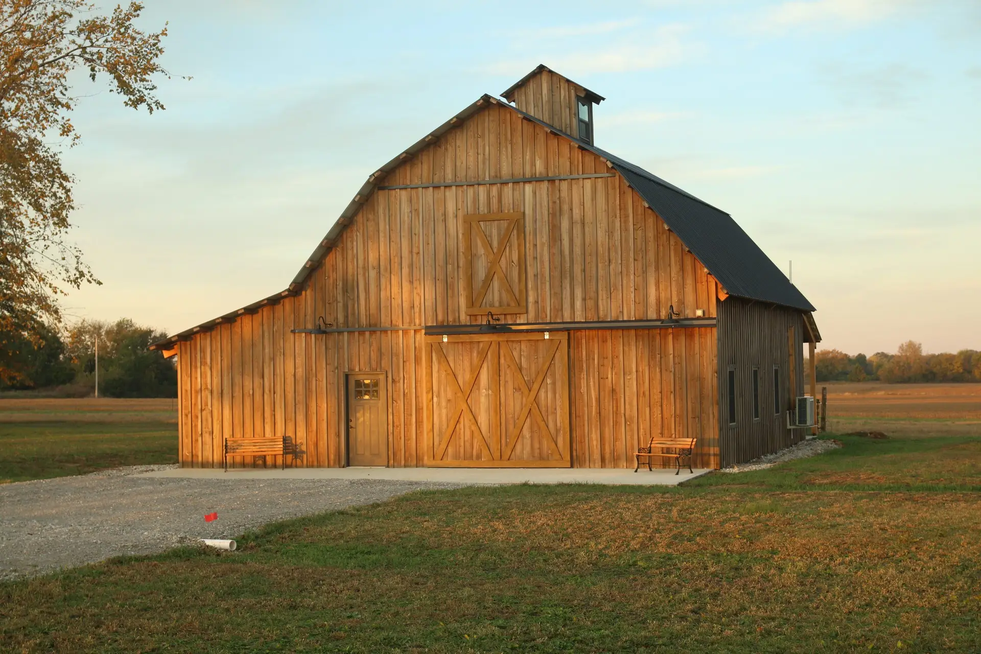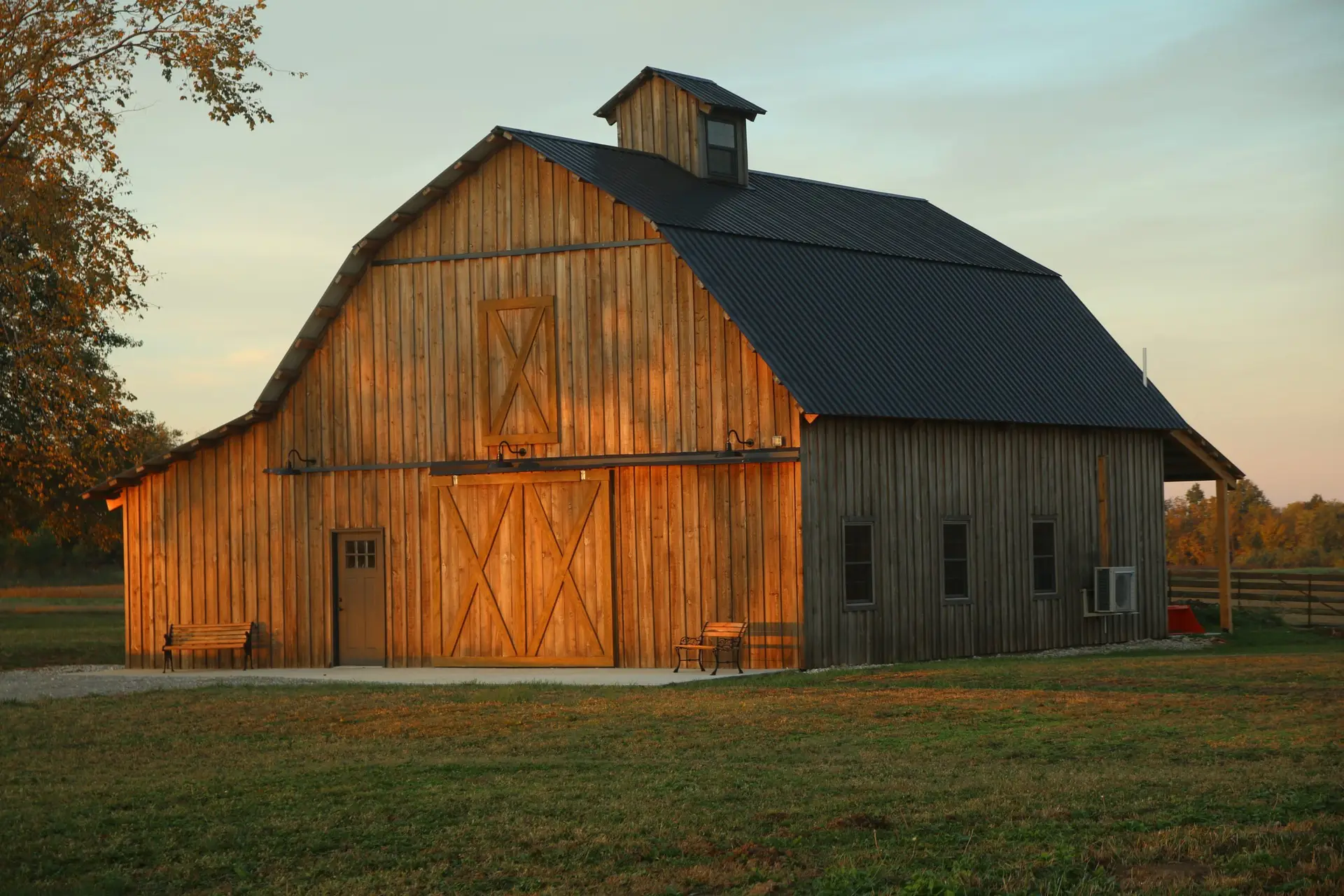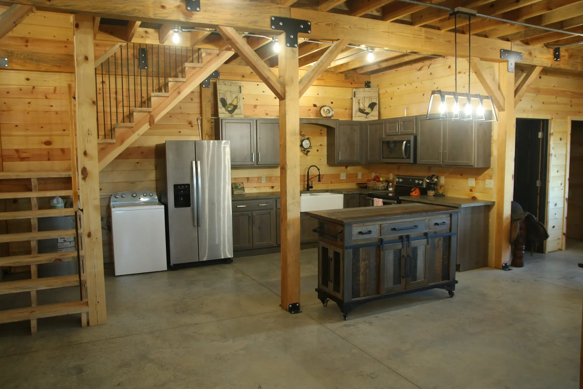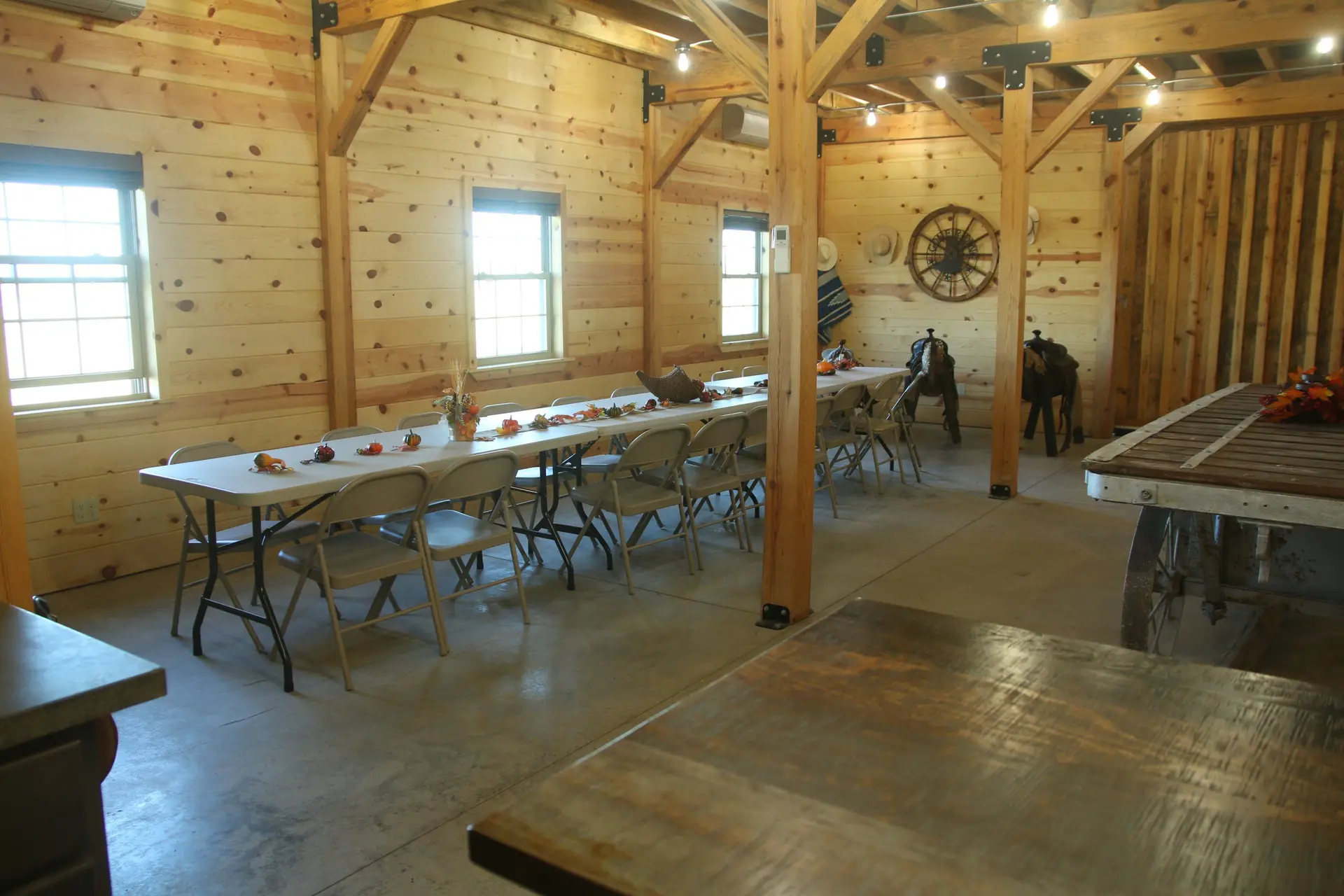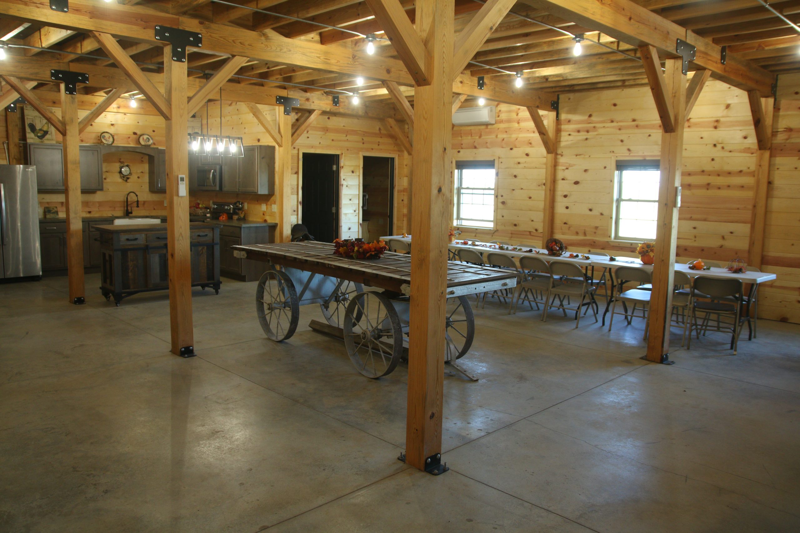 This Barn could be your Wedding venue, featuring a dining area with a kitchen downstairs and an event space upstairs for your ceremony.